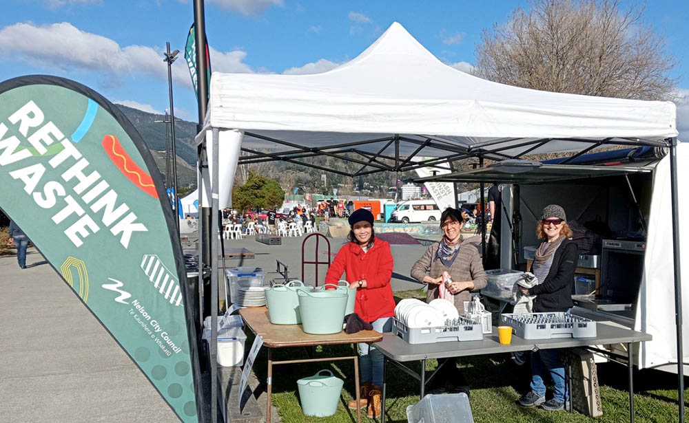 Waste No More’s Wash Against Waste trailer was launched in 2019 with support from Nelson City Council. This mobile wash station makes it easy for events to adopt a true Zero Waste approach.
